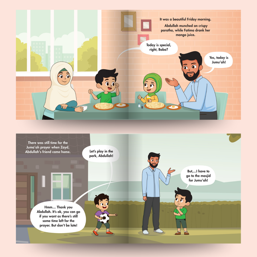 Abdullah and Fatima are having the best day — until they suddenly realize… it’s prayer time! What follows is a lesson in urgency, prioritization, and the beauty of Salah at its proper time. This relatable story gently reminds kids that no matter how busy or distracted we get, prayer is always worth stopping for.